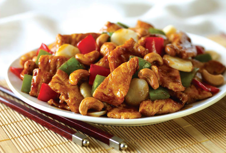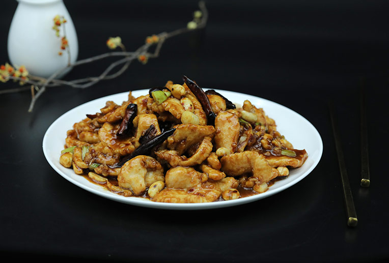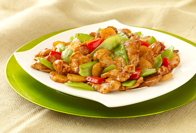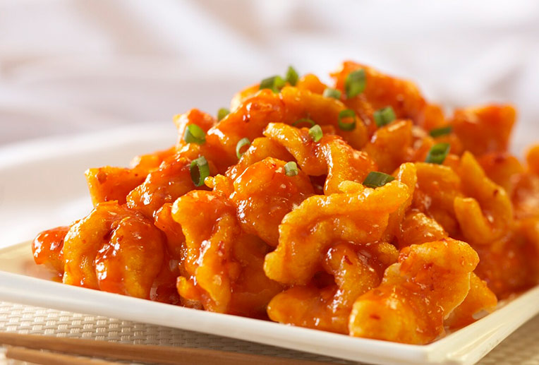 Lightly battered chicken breast stir-fried with fresh minced ginger, garlic, and green onions in our spicy sweet & aromatic sauce.