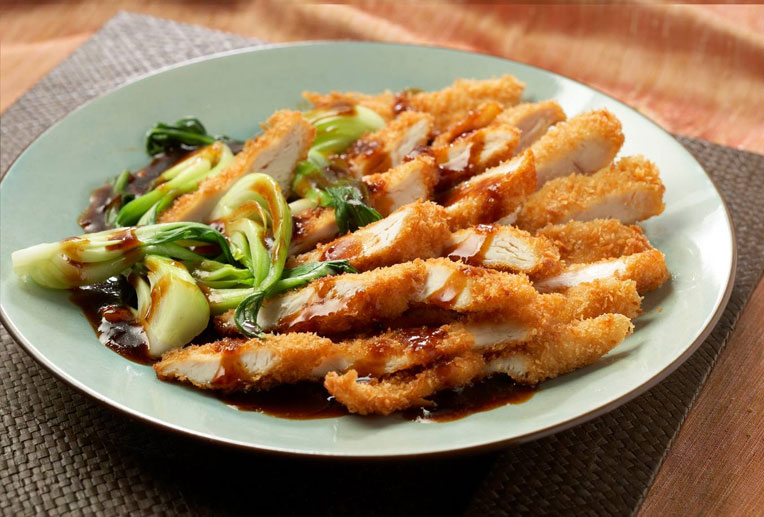 Breaded chicken breast and baby bok choy in a spicy garlic sauce. Served on a sizzling platter.