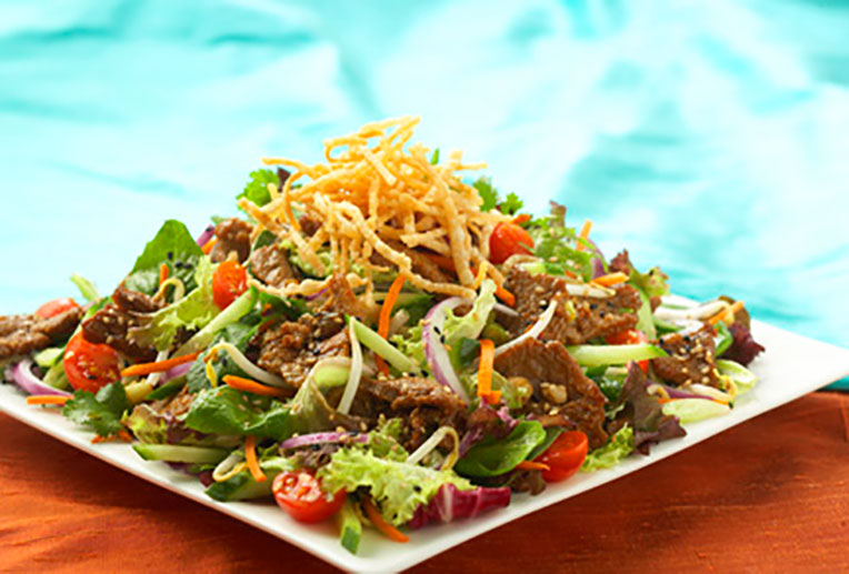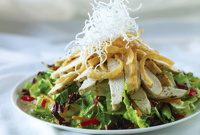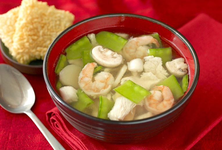 Succulent shrimp, scallops, chicken breast, snow peas, water chestnuts, mushrooms and sizzling rice in a flavorful chicken broth.