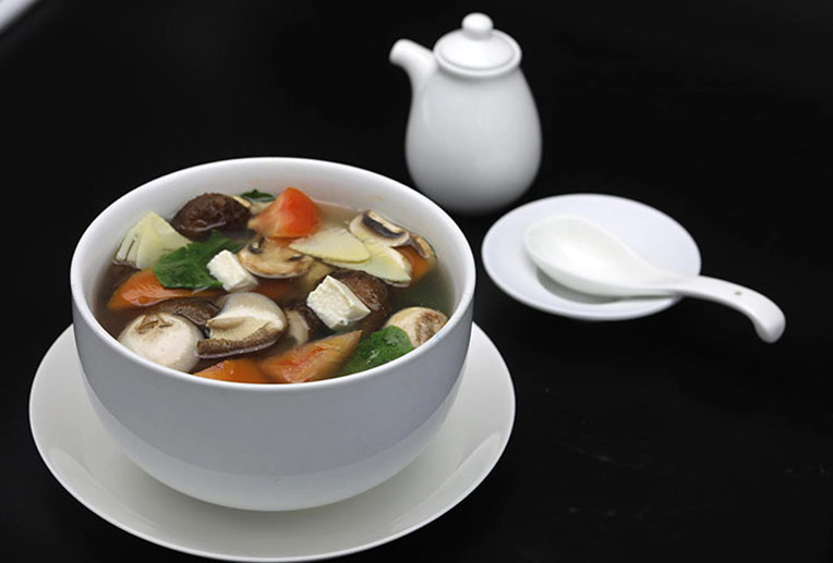 Delectable tofu, fresh spinach, tomatoes, bamboo shoots, shitake & white mushrooms all simmered in a flavorful vegetable broth.